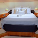 The motor yacht can accommodate 7 guests in 4 cabins.
