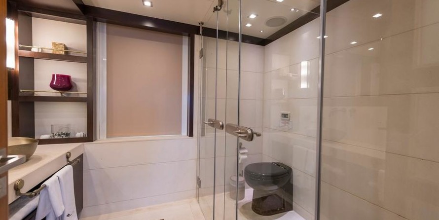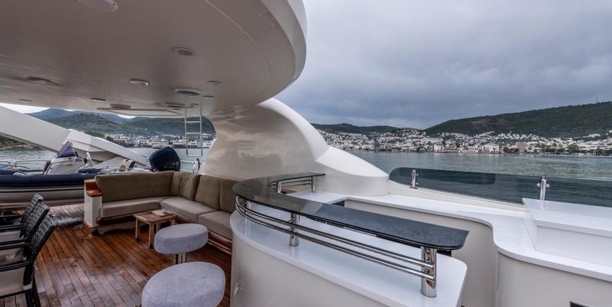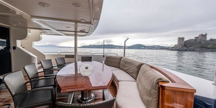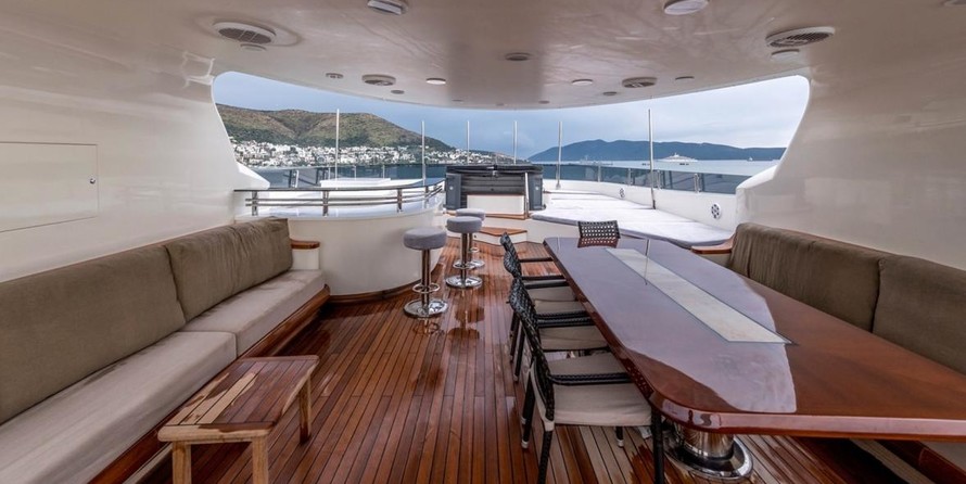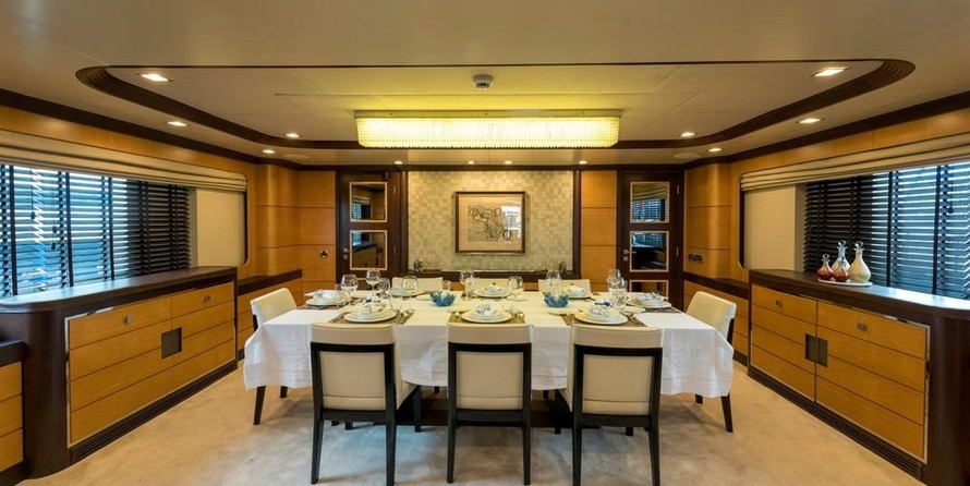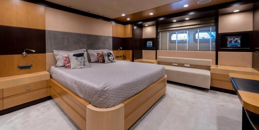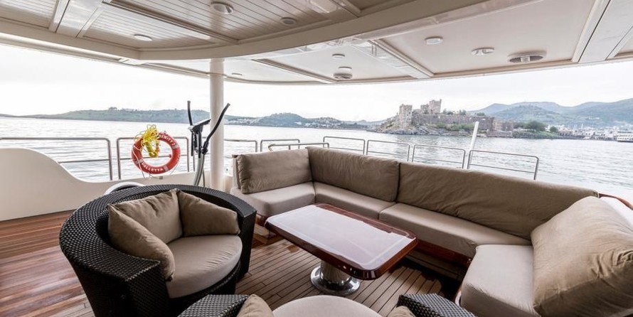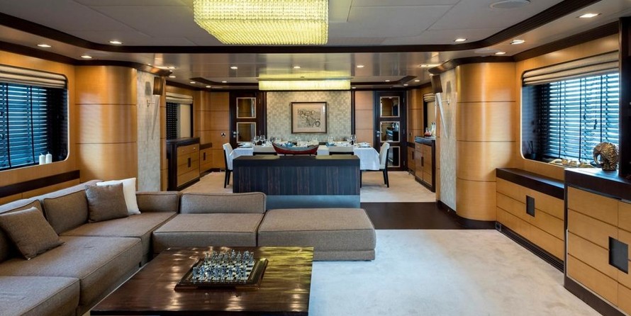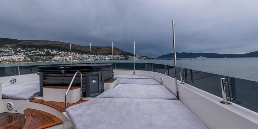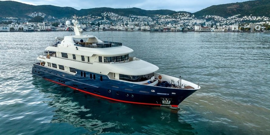 The motor yacht can accommodate 12 guests in 5 cabins with an interior design by H2 Yacht Design and an exterior design by Endaze Marine Engineering.