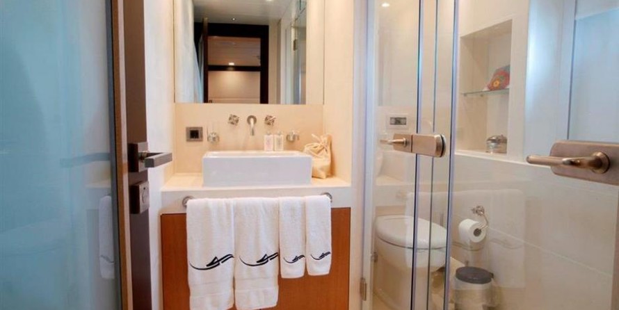 With a beam of 8 m and a draft of 2.47 m, she has a steel hull and aluminium superstructure. This adds up to a gross tonnage of 390 tons.