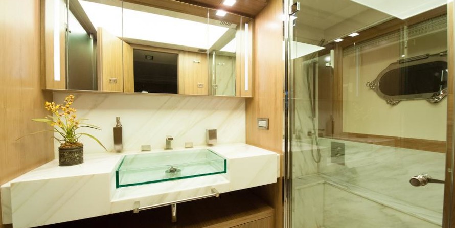 The motor yacht can accommodate 10 guests in 5 cabins.