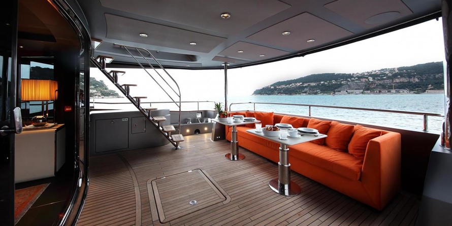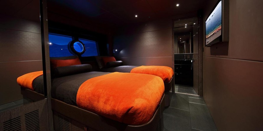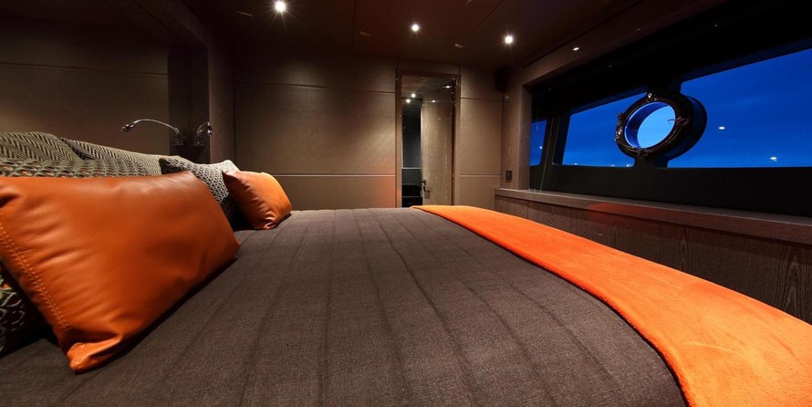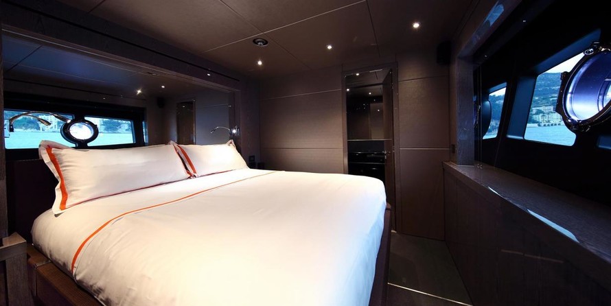 The motor yacht can accommodate 8 guests in 4 cabins with an interior design by Lazzarini Pickering Architects and an exterior design by Sunseeker International Limited.