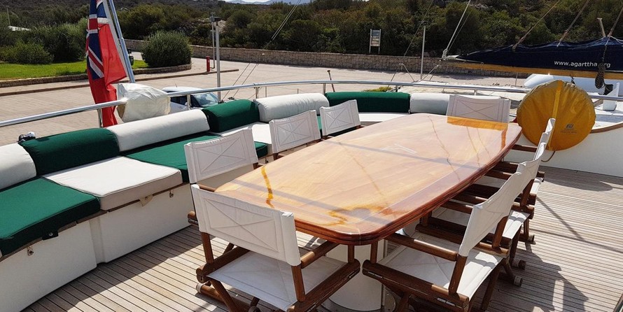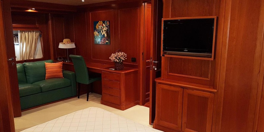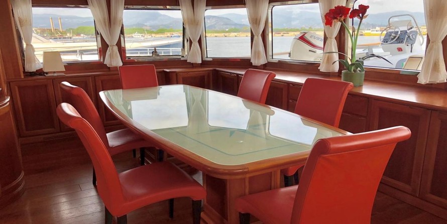 The motor yacht can accommodate 10 guests in 4 cabins. The yacht was designed by Terranova Yachts.