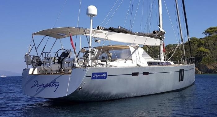 Dynasty is a 19.8 m / 65′0″ luxury sailing yacht. She was built by Hanse in 2007. With a beam of 5.4 m and a draft of 2.95 m, she has a epoxy composite hull. She is powered by Volvo engines of 160 HP hp each giving her a maximum speed of 13 knots. Dynasty's maximum range is estimated at 1750 nautical miles. The sailing yacht can accommodate 6 guests in 3 cabins with an interior design by Judel Vrolijk