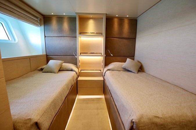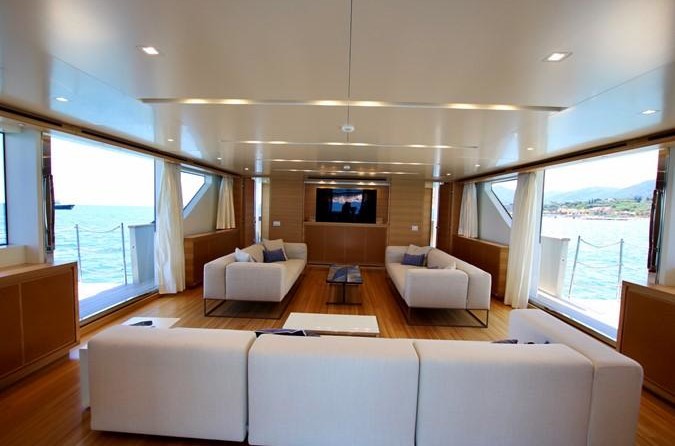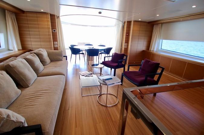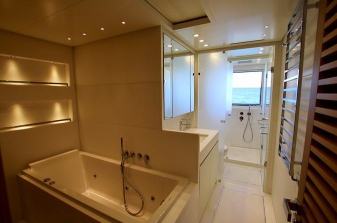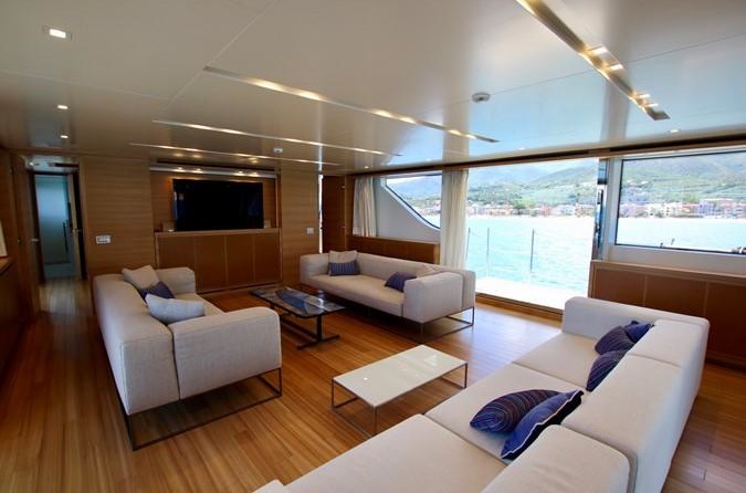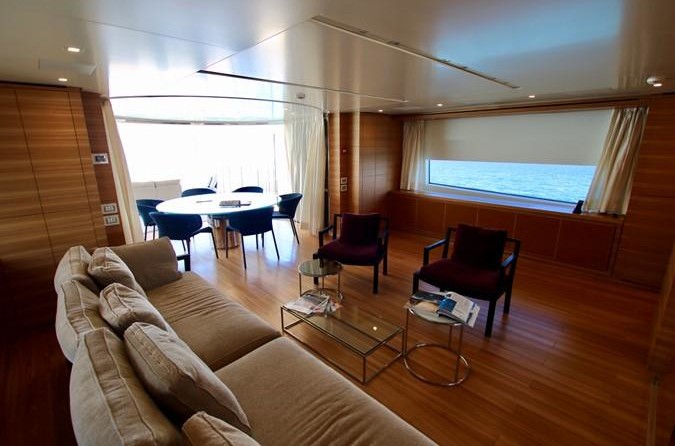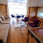 The motor yacht can accommodate 10 guests in 5 cabins. The yacht was designed by Francesco Paszkowski.