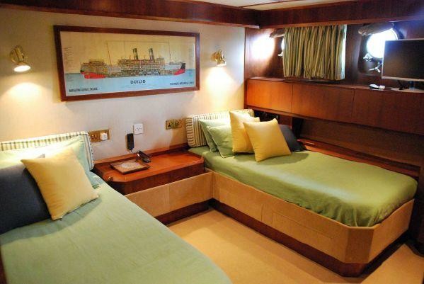 The motor yacht can accommodate 8 guests in 4 cabins. The yacht was designed by De Beer.