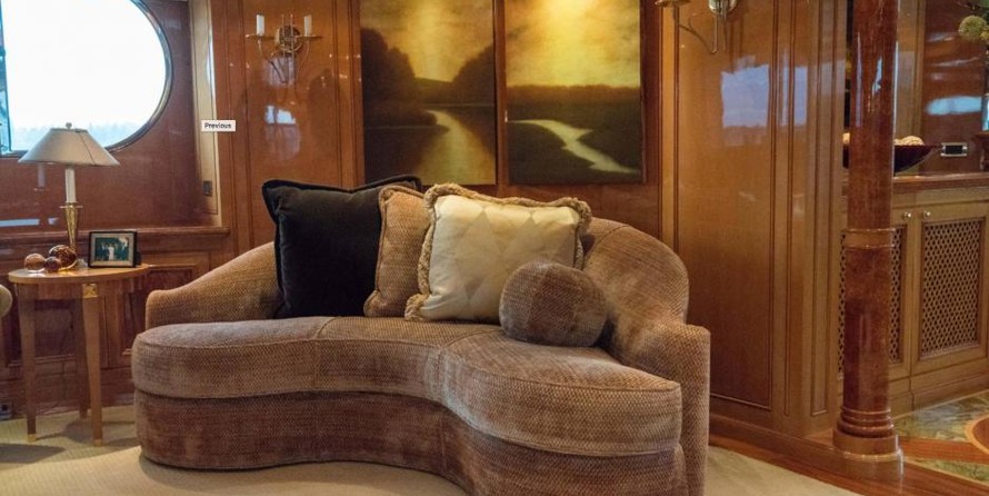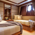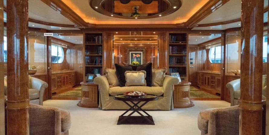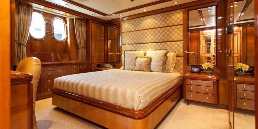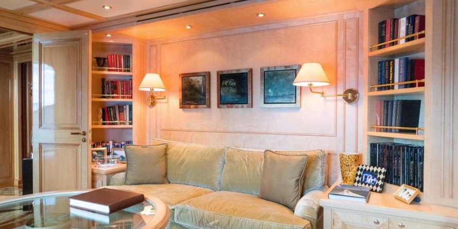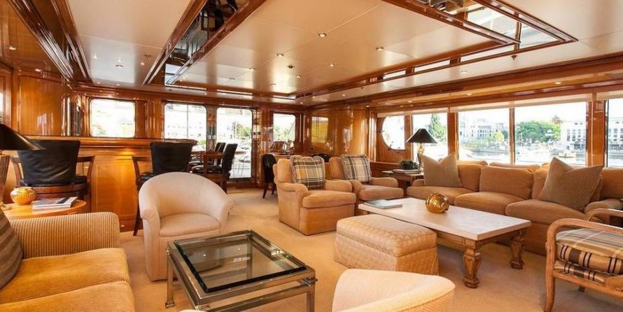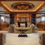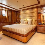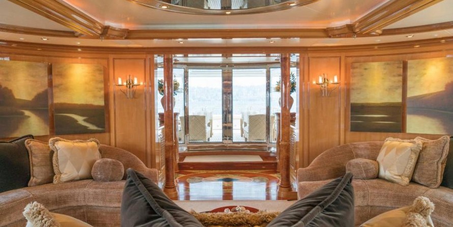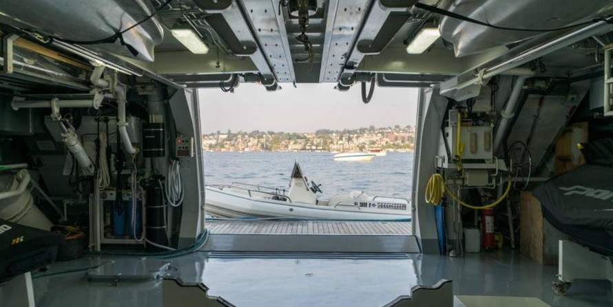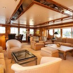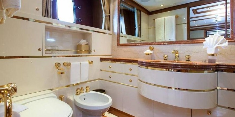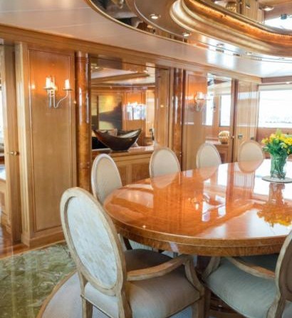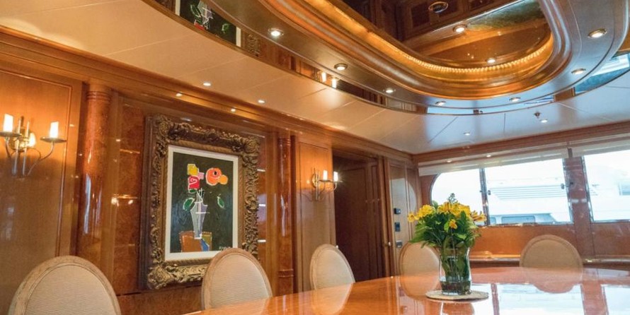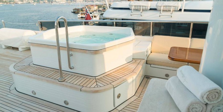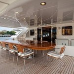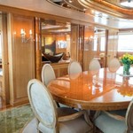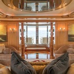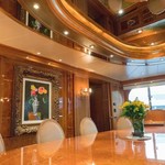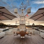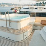 The motor yacht can accommodate 10 guests in 6 cabins with an interior design by Della Role Design and an exterior design by Codecasa.