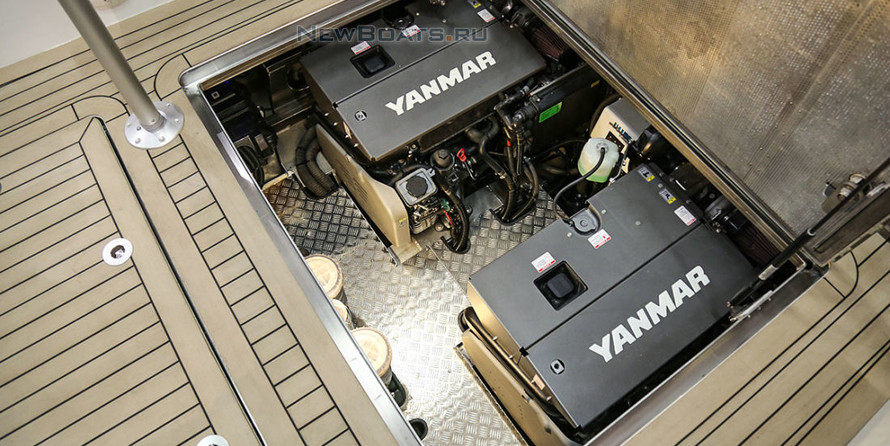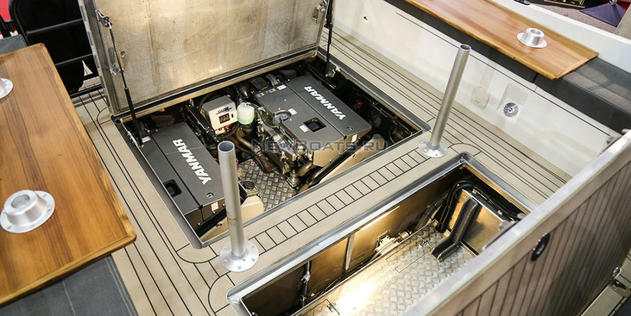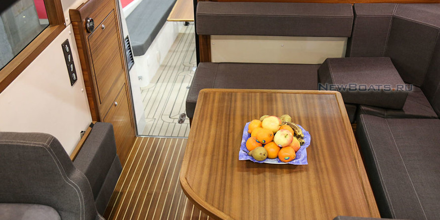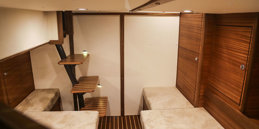Sofas longitudinal, with lockers in cockpit p/l Board