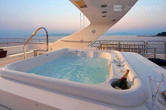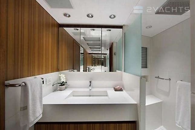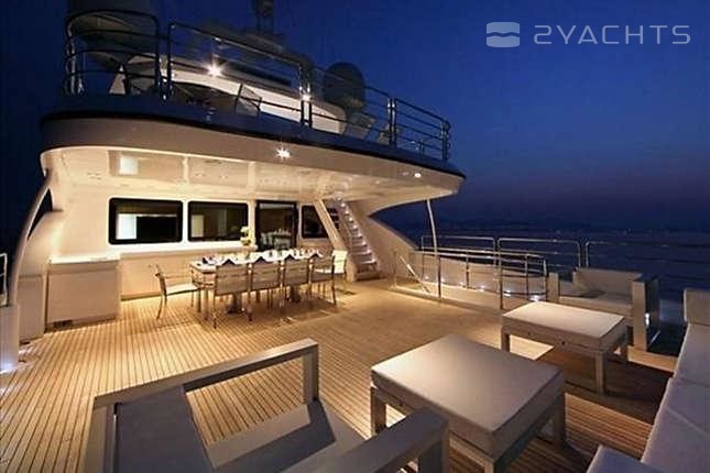 With a beam of 7.92 m and a draft of 1.98 m, she has an aluminium hull and aluminium superstructure.