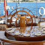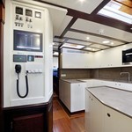 The sailing yacht can accommodate 10 guests in 5 cabins with an interior design by Winch Design and an exterior design by Bruce King.