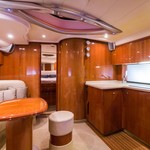 Boat equipment features bbq, bimini and bow thruster. It also boasts a heating, air conditioning, an audio system, outside speakers and kayak. The fully-equipped galley includes a microwave, freezer, coffee machine, cooker and sink.