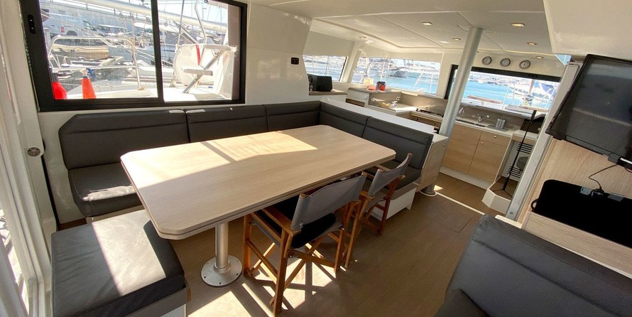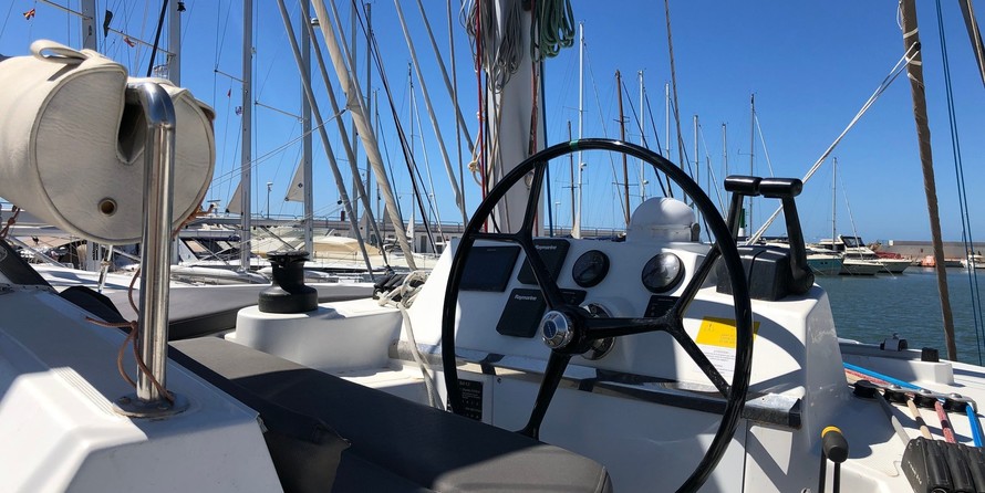 This catamaran is operated by the charter company First class sailing Spain.
