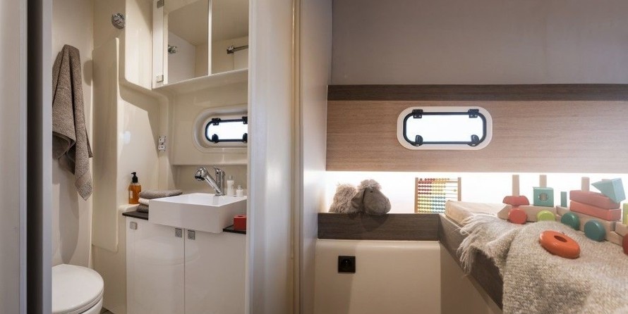 Catamaran Escape 1 offers 3 toilets with a shower.