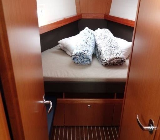 Oberon can accommodate up to 8 people in 3 double cabins and a saloon with 2 extra beds. Pillows and blankets are included in the price.