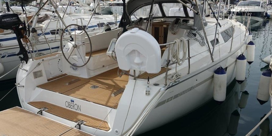 3-cabin sailing yacht Bavaria Cruiser 41 - Oberon was built in 2019, (renovated in 2021,) and it is docked in Marina di Portisco, Italy.