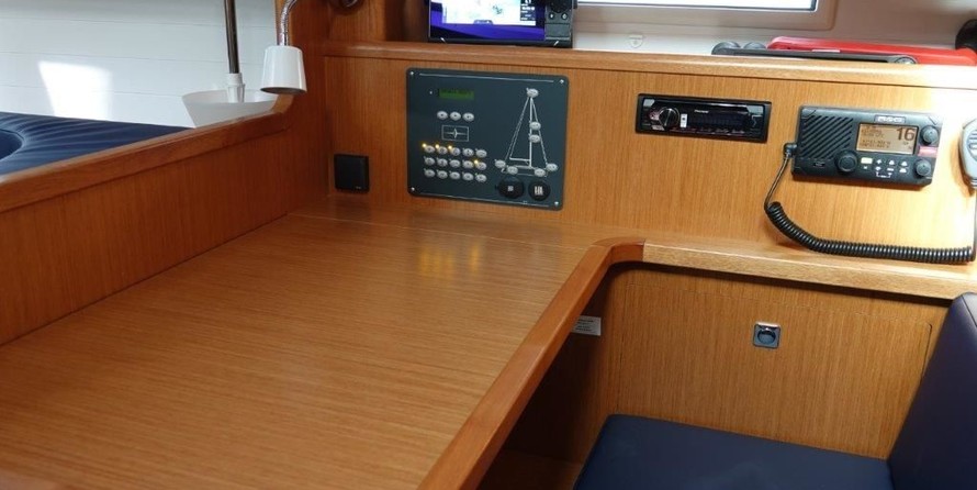 Boat equipment features rolling mainsail, bimini and outside gps plotter. It also boasts an an audio system, outside speakers and inside speakers. The fully-equipped galley includes an oven, cooker, sink and kitchen utensils.
