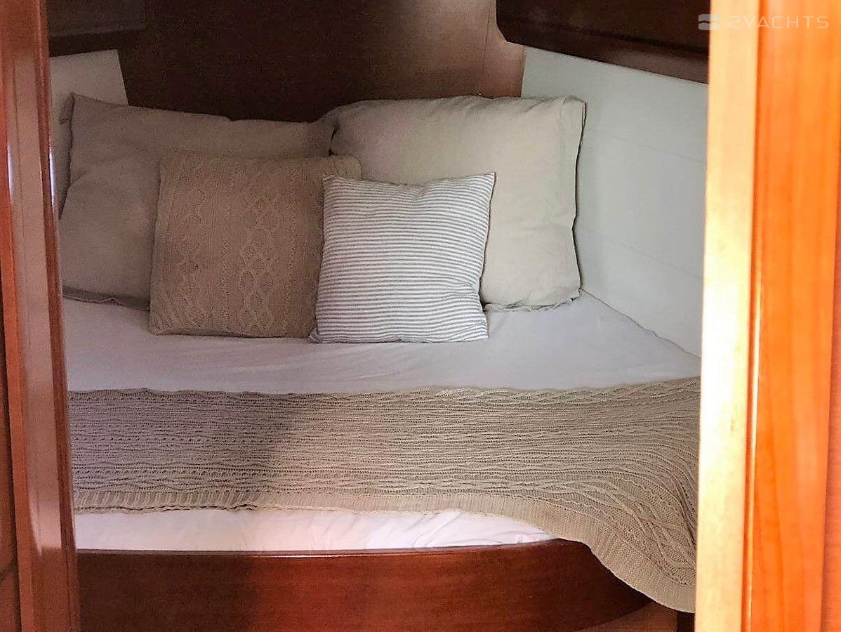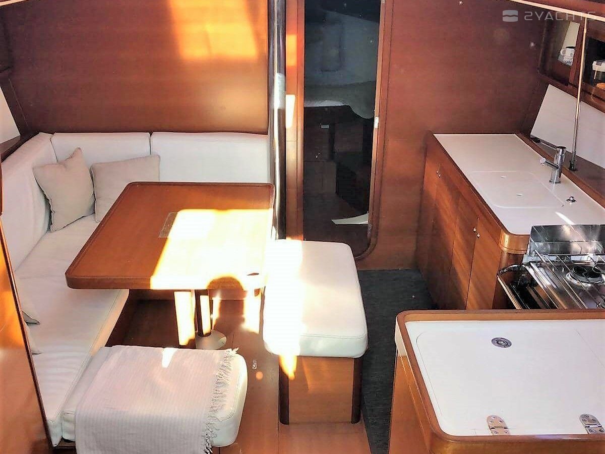 Boat equipment features classical mainsail, bimini and outside gps plotter. It also boasts an an audio system, outside speakers and inside speakers. The fully-equipped galley includes a freezer, oven, cooker, sink and kitchen utensils.