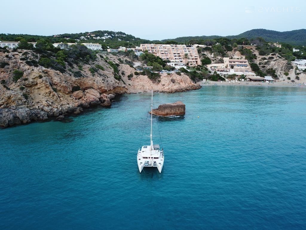 This catamaran is operated by the charter company Cata Experience.