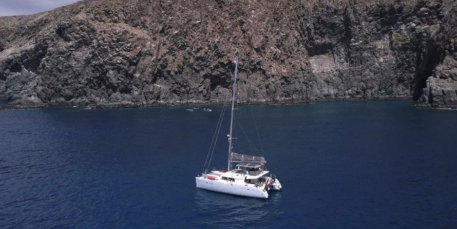 This catamaran is operated by the charter company Blueocean Yachtcharter.