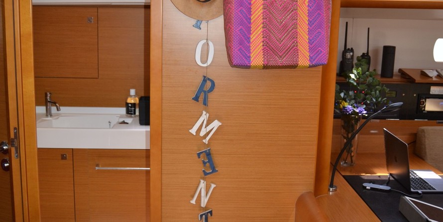 Nuk can accommodate up to 12 people in 4 double cabins, 1 double cabin with a bunk bed and a saloon with 2 extra beds. Pillows and blankets are included in the price.