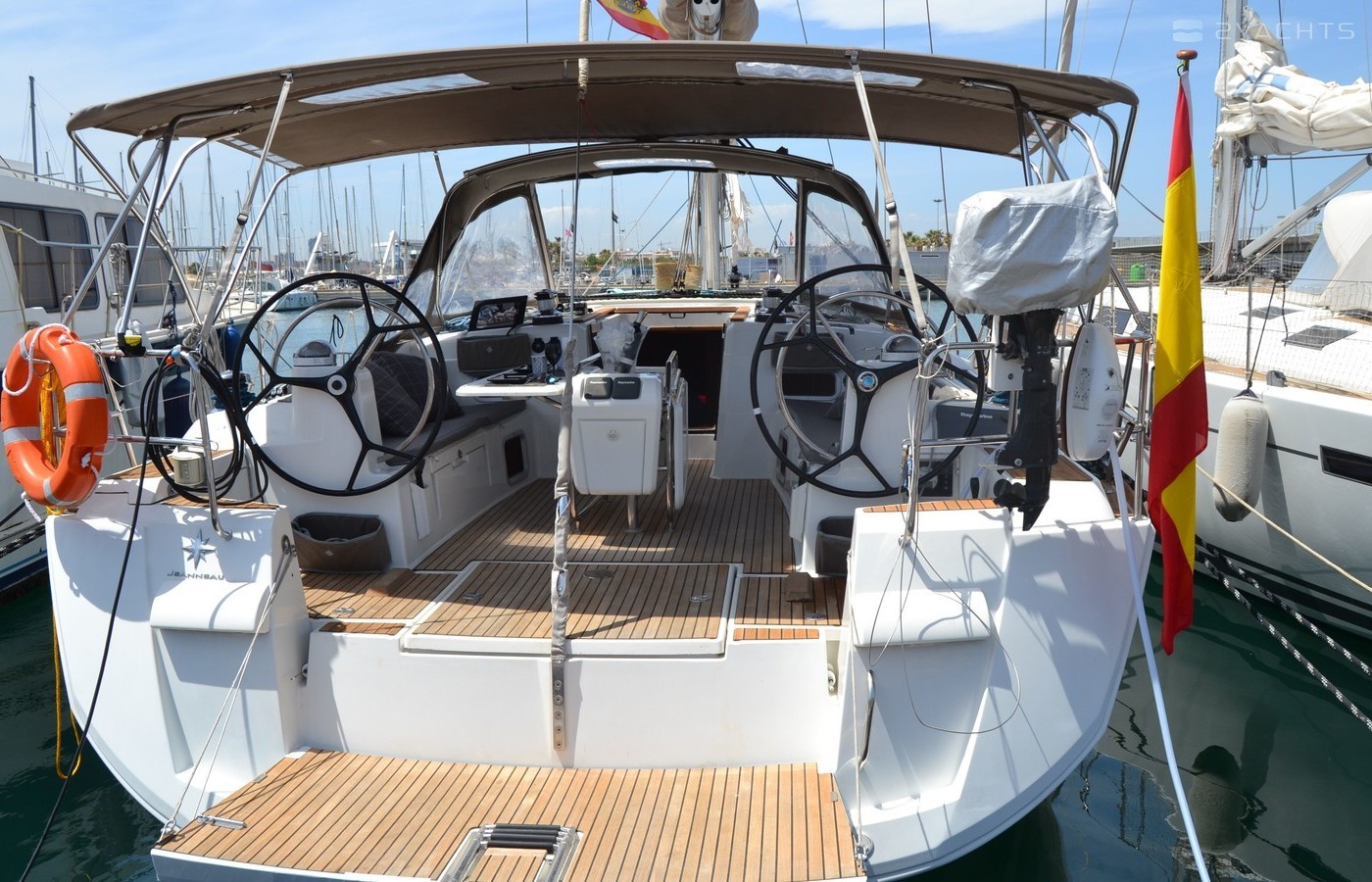 5-cabin sailing yacht Jeanneau Sun Odyssey 509 - Nuk was built in 2013, (renovated in 2021,) and it is docked in La Marina de Valencia, Spain.