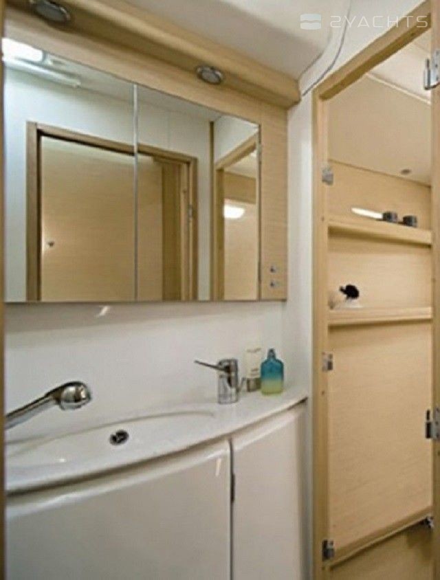 Boat equipment features classical mainsail, electric winches, generator, bimini and outside gps plotter. It also boasts a flat screen tv, an audio system, dvd player, outside speakers and flybridge. The fully-equipped galley includes a microwave, freezer, coffee machine, oven and cooker.