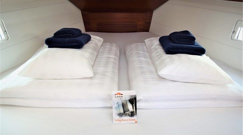 Tortuga can accommodate up to 6 people in 3 double cabins and a saloon with 2 extra beds. Pillows and blankets are included in the price.