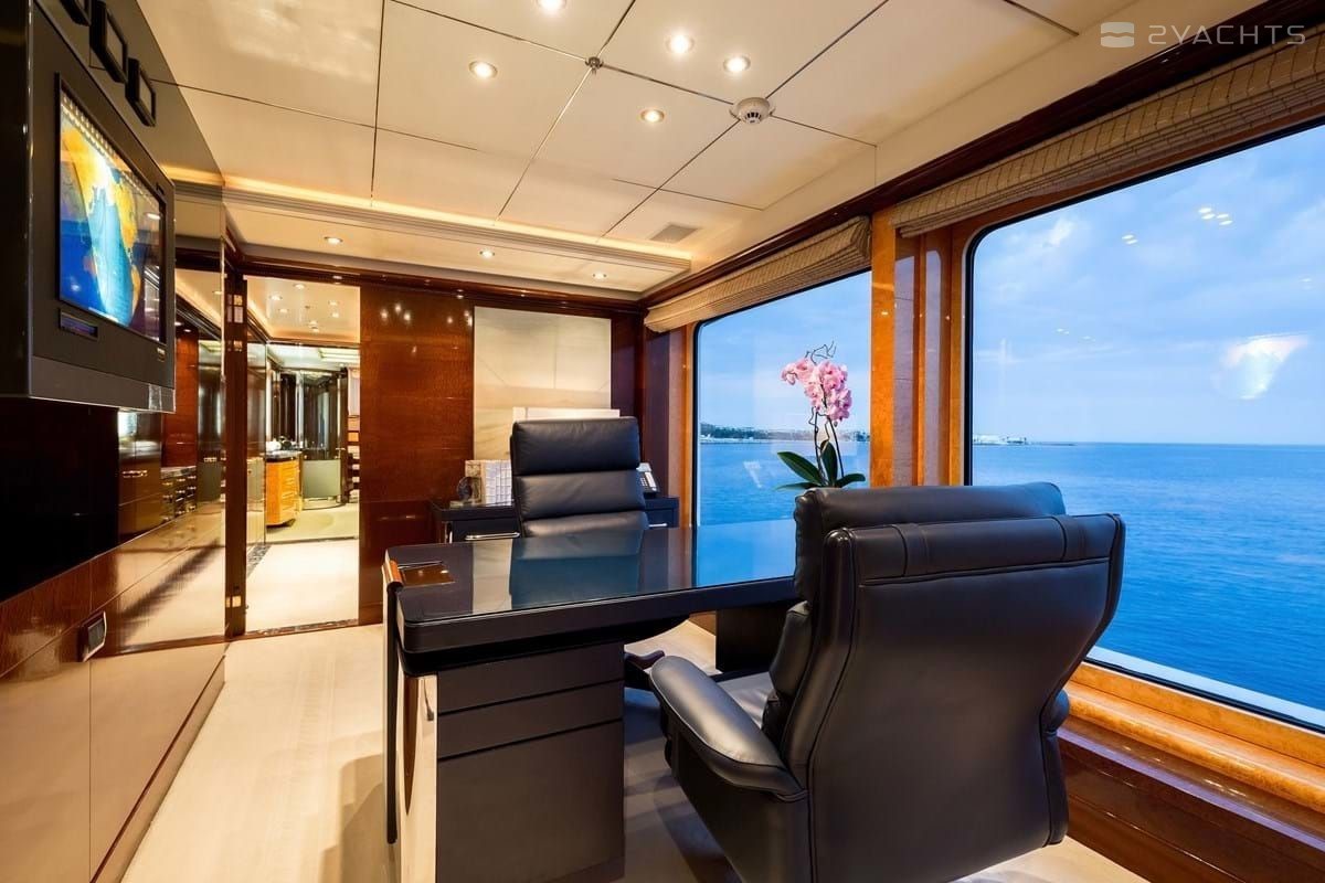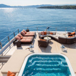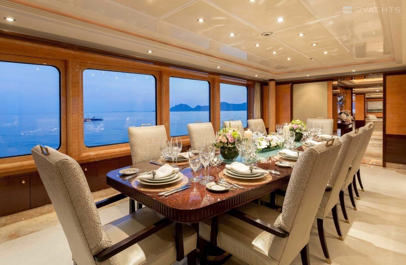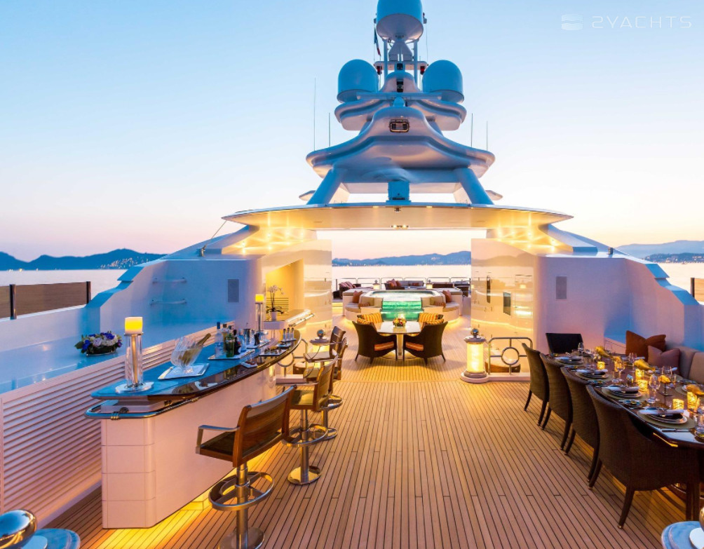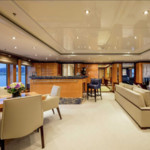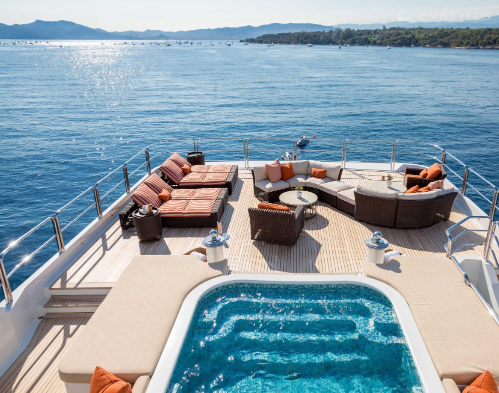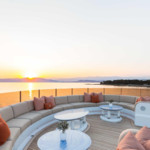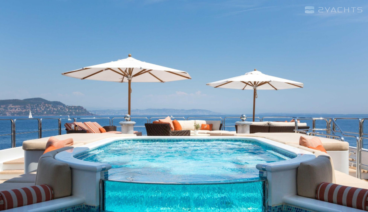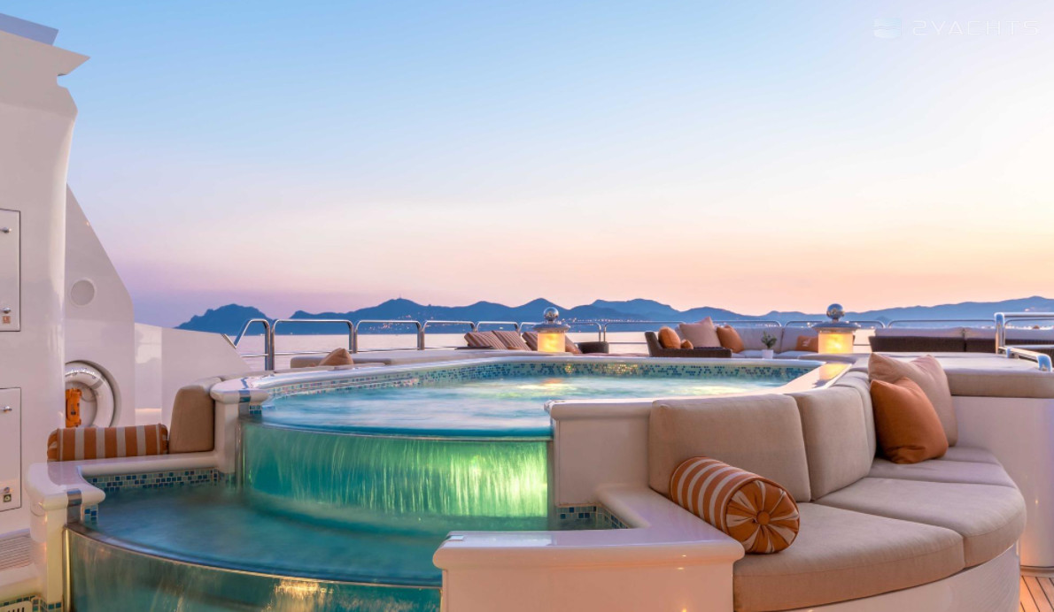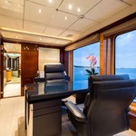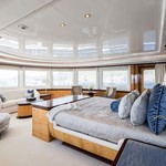 Boat equipment features radar, generator, bimini and bow thruster. It also boasts a jet ski, flat screen tv, heating, air conditioning and audio system. The fully-equipped galley includes a dishwasher, freezer, coffee machine, oven and cooker.