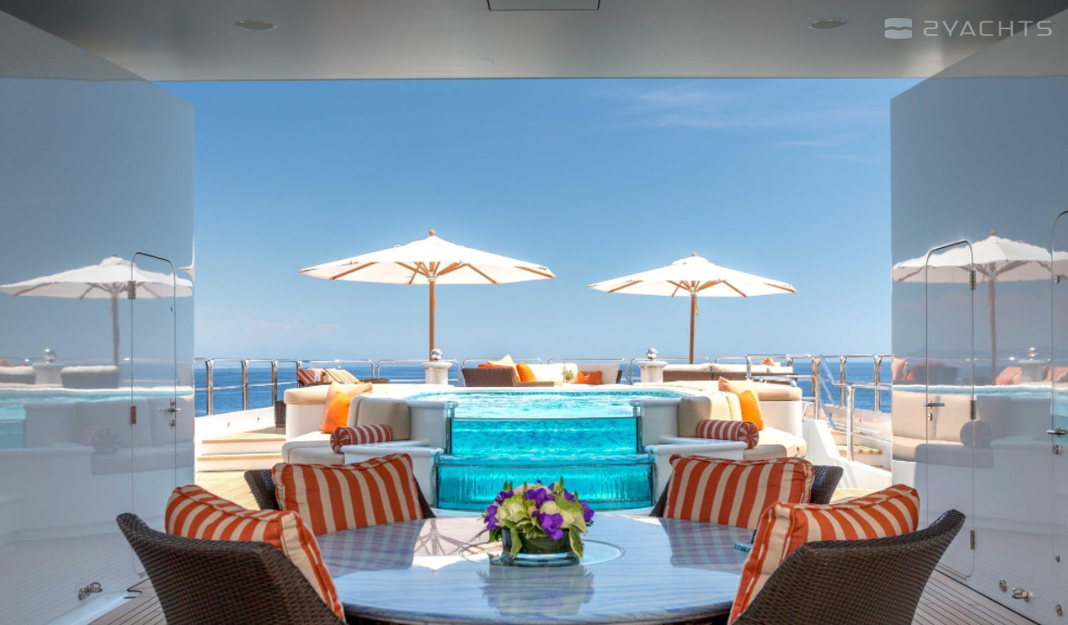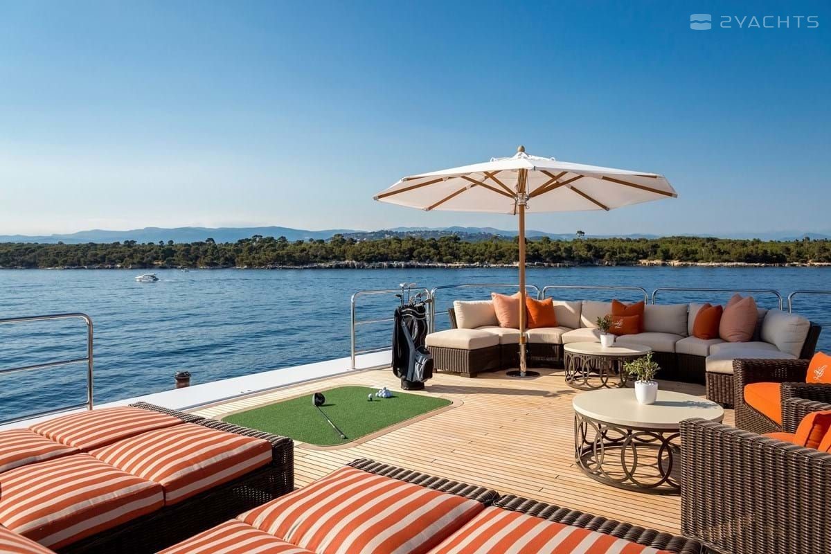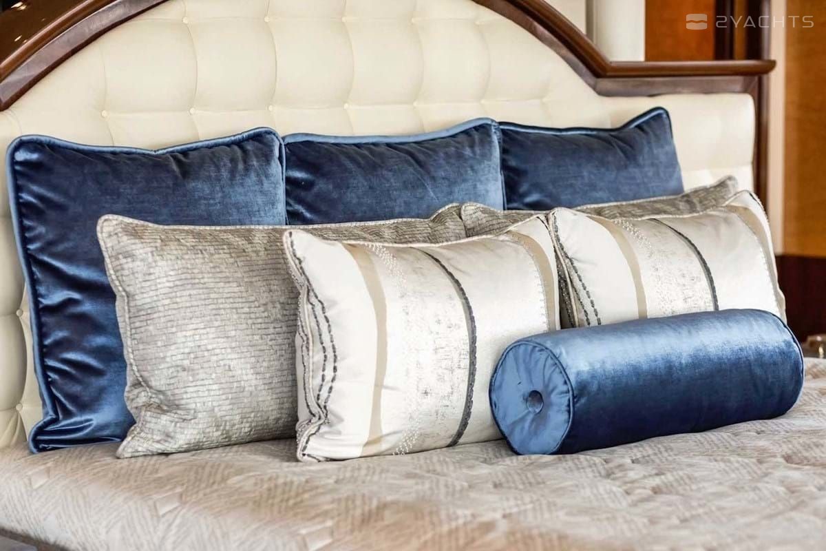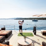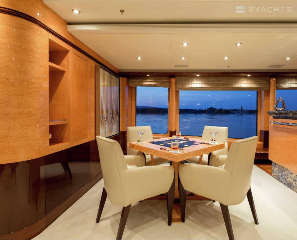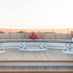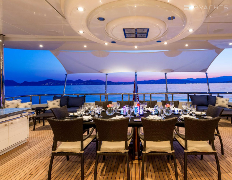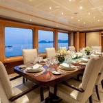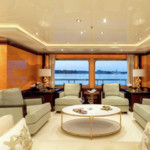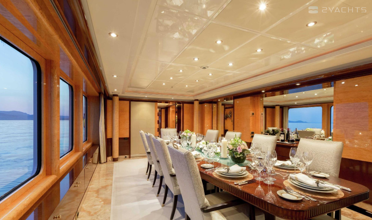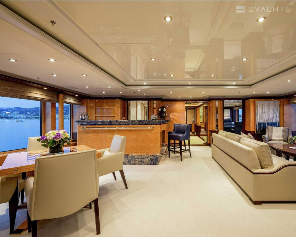Boat equipment features radar, generator, bimini and bow thruster. It also boasts a jet ski, flat screen tv, heating, air conditioning and audio system. The fully-equipped galley includes a dishwasher, freezer, coffee machine, oven and cooker.