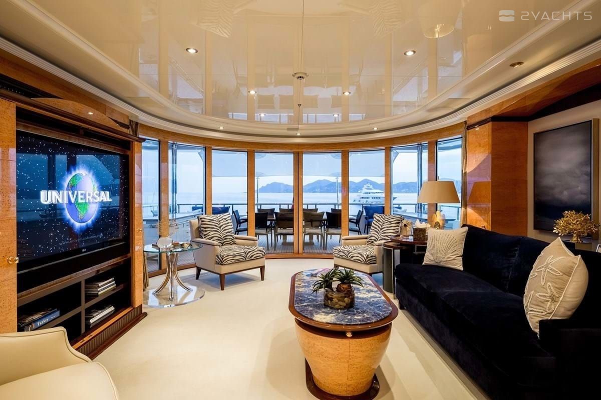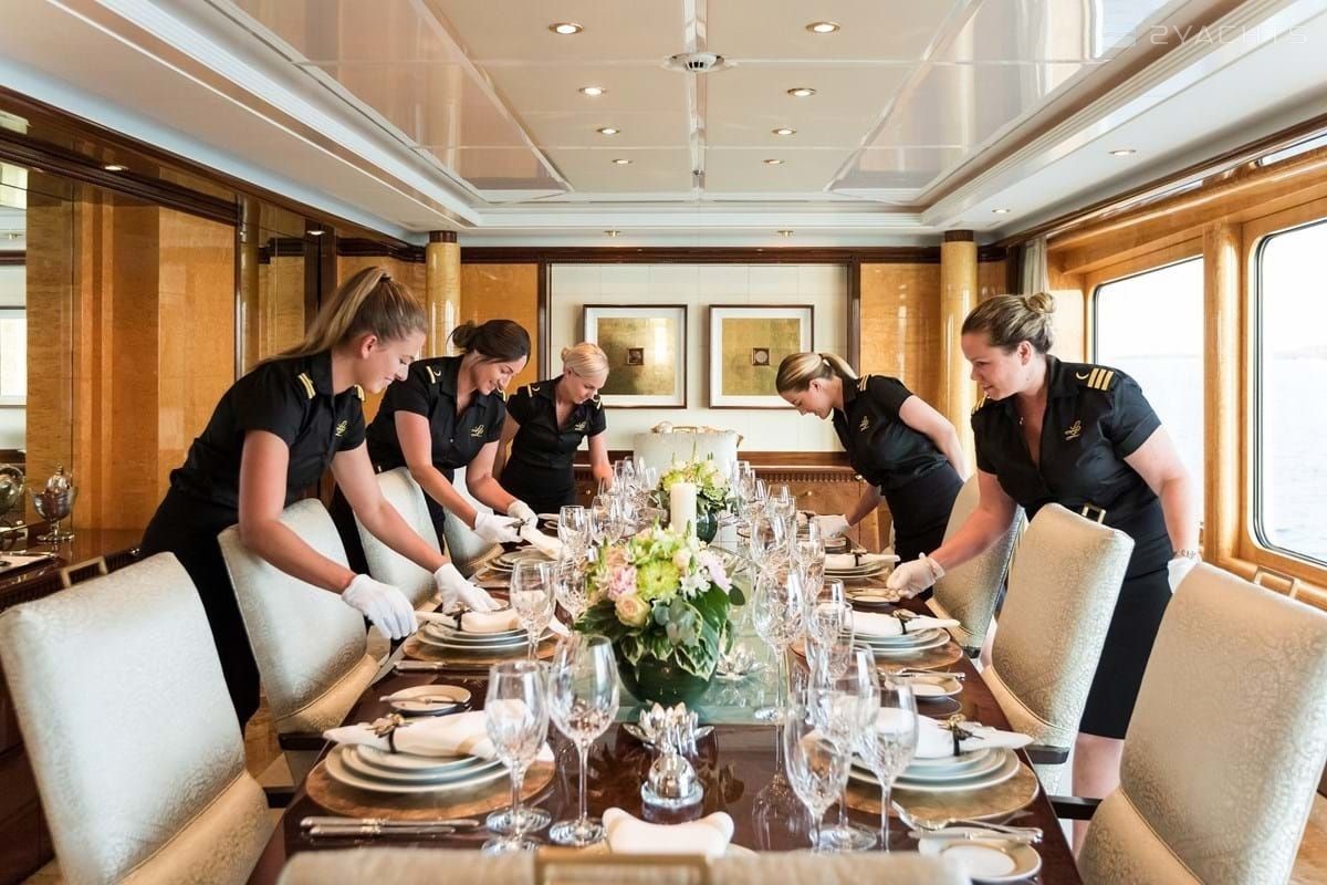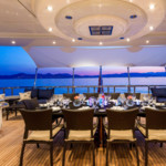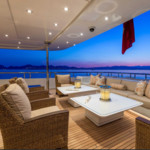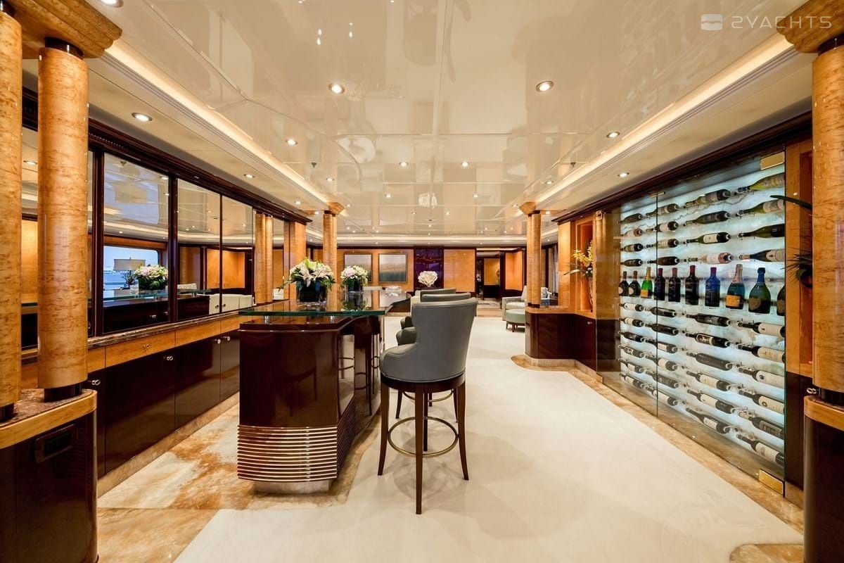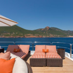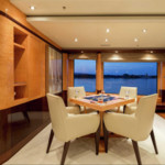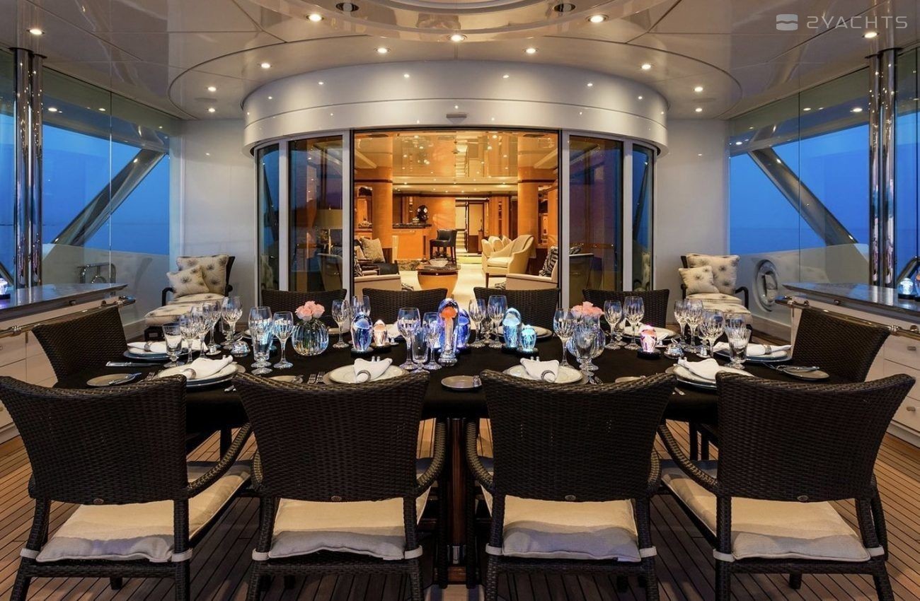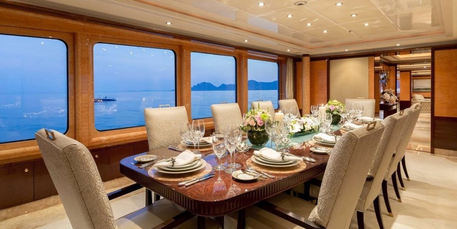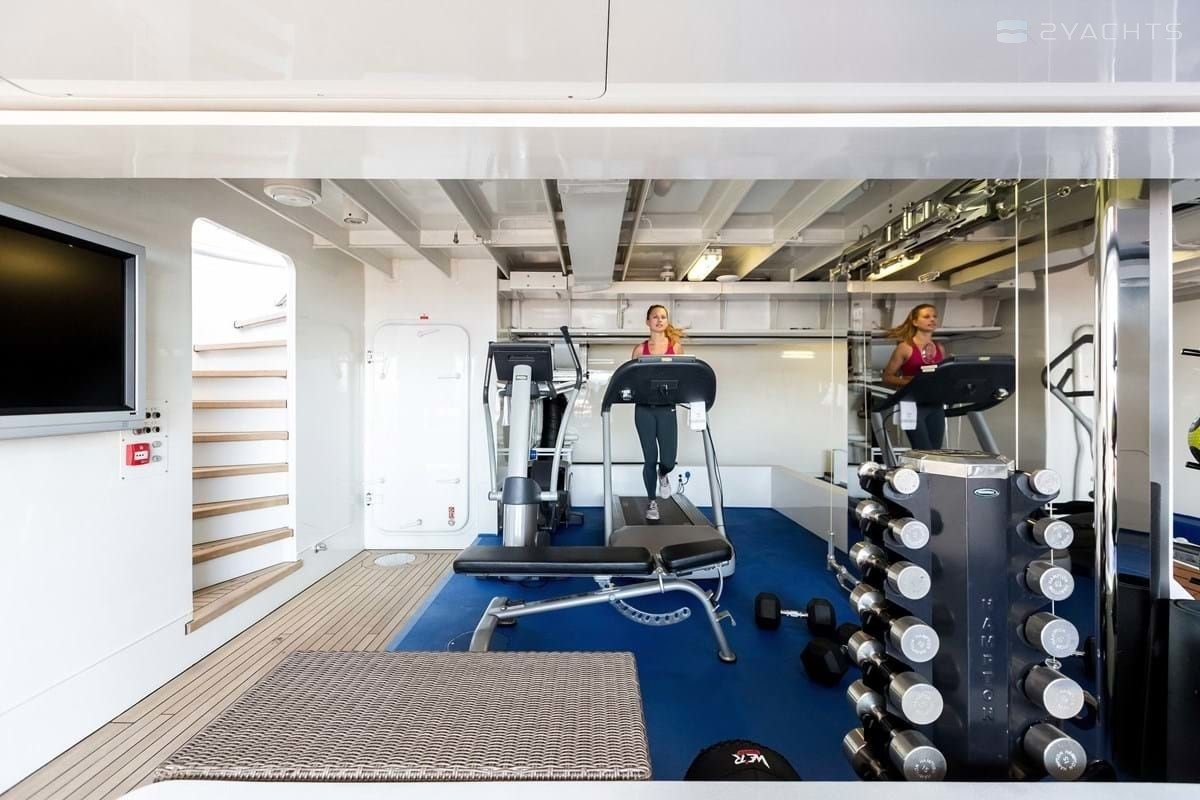 Boat equipment features radar, generator, bimini and bow thruster. It also boasts a jet ski, flat screen tv, heating, air conditioning and audio system. The fully-equipped galley includes a dishwasher, freezer, coffee machine, oven and cooker.
