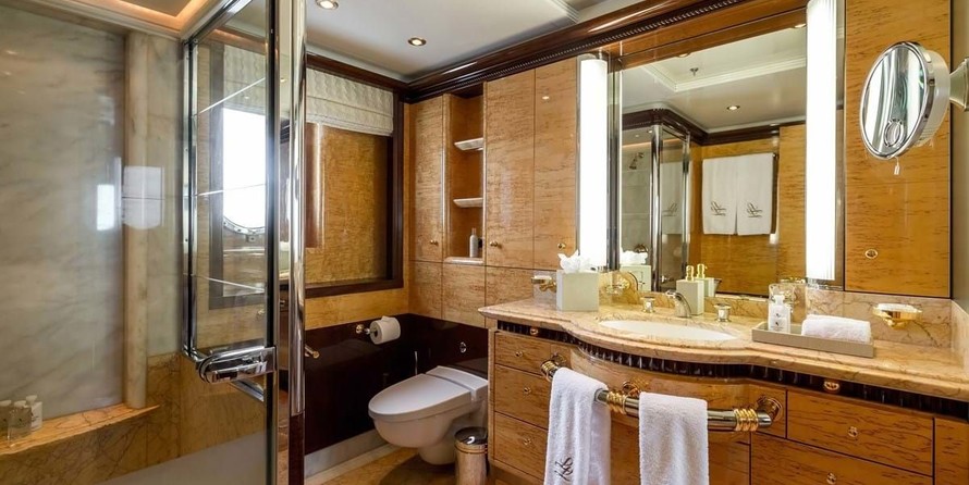 Motor yacht Lucky Lady offers 5 toilets with a shower.
