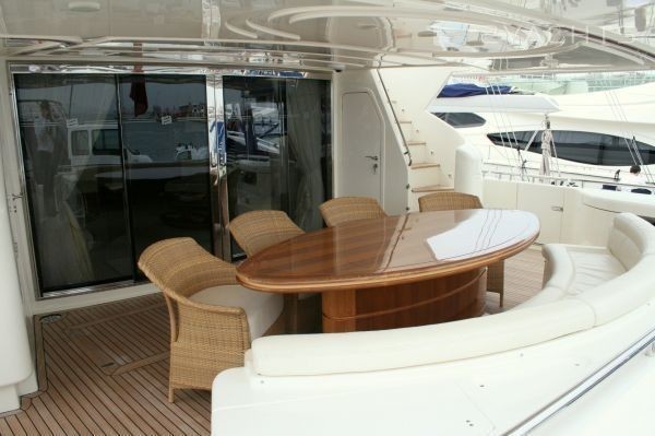 Boat equipment features radar, generator, salon gps plotter, bimini and bow thruster. It also boasts a jet ski, flat screen tv, heating, air conditioning and washing machine. The fully-equipped galley includes a dishwasher, freezer, oven, cooker and sink.