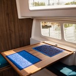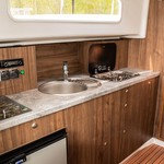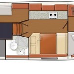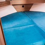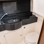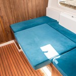 Boat equipment features bimini and bow thruster. It also boasts a heating, an audio system and inside speakers. The fully-equipped galley includes a cooker, sink and kitchen utensils.