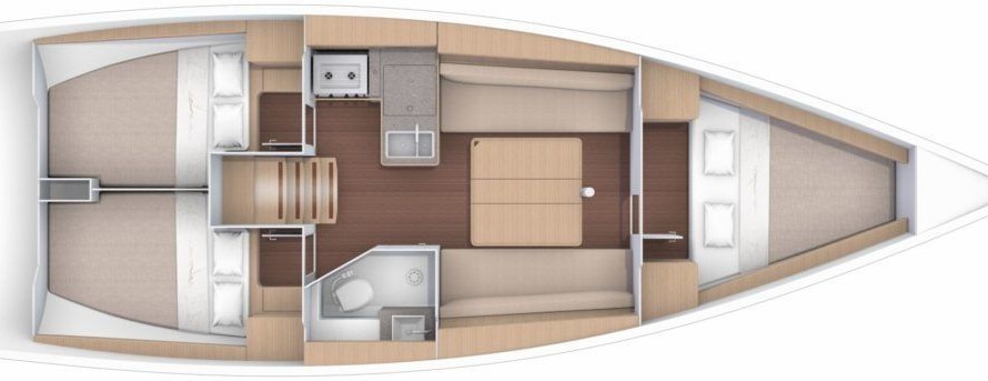 Blue Mares can accommodate up to 8 people in 3 double cabins and a saloon with 2 extra beds. Pillows and blankets are included in the price.