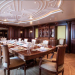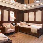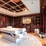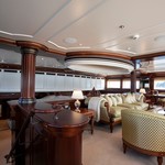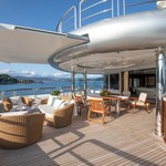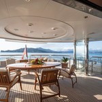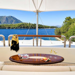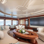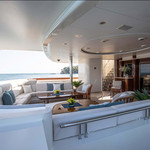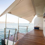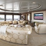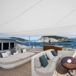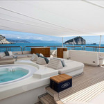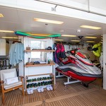 Boat equipment features radar, generator, salon gps plotter, bimini and bow thruster. It also boasts a jet ski, flat screen tv, heating, air conditioning and washing machine. The fully-equipped galley includes a dishwasher, ice maker, freezer, coffee machine and oven.