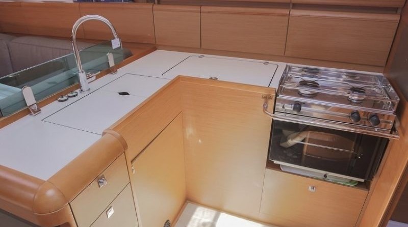 Boat equipment features classical mainsail, radar, salon gps plotter, bimini and bow thruster. It also boasts an an audio system, outside speakers and inside speakers. The fully-equipped galley includes an oven, cooker, sink and kitchen utensils.