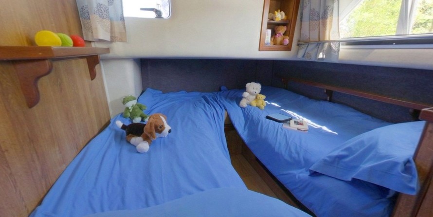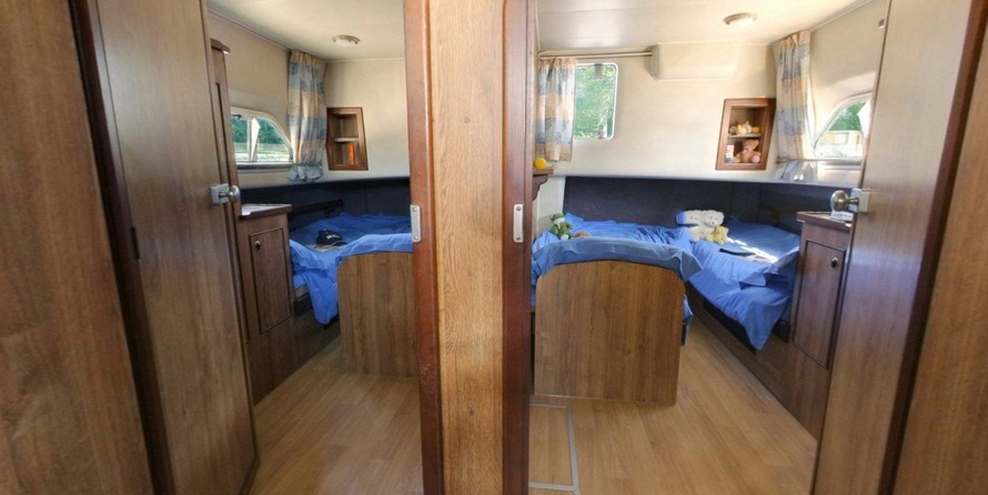 The living area of this houseboat consists of 3 cabins and accommodates 6 people. A shower is at the guests' disposal and there are 3 toilets on board.