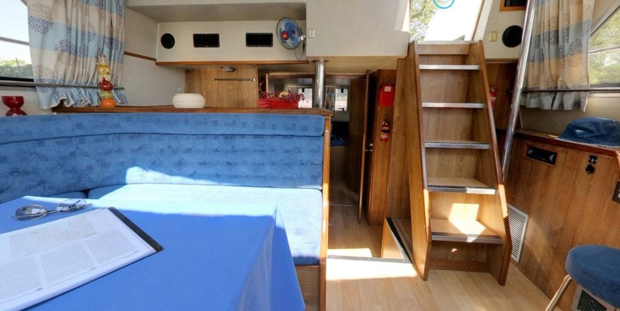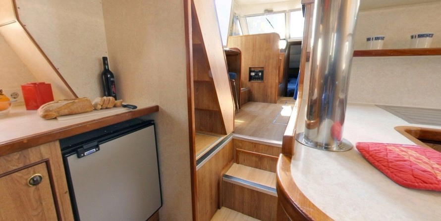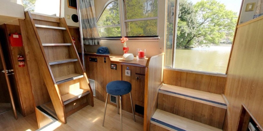 This houseboat is equipped with bow thruster. In chilly weather, guests will benefit from heating. an audio system, dvd player, outside speakers, flybridge and inside speakers are also available.