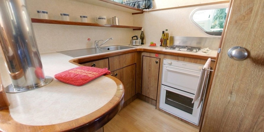 A well-equipped galley with oven, cooker, sink and kitchen utensils is prepared to facilitate cooking. There is also a on board.