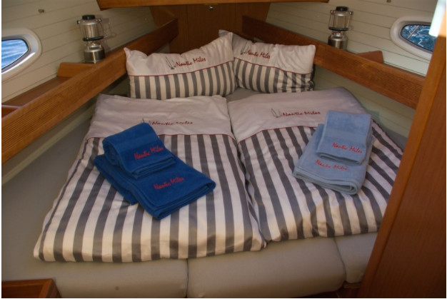 Homer can accommodate up to 10 people in 3 double cabins and 2 double cabins with a bunk bed.