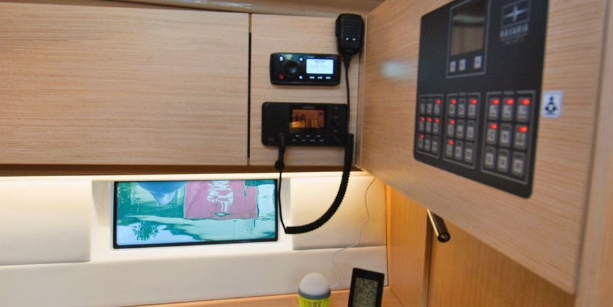 Boat equipment features Classical mainsail, Solar panels, Bimini and Bow thruster. It also boasts an Audio system, Outside speakers and Inside speakers. The fully-equipped galley includes Oven, Cooker, Sink and Kitchen utensils.