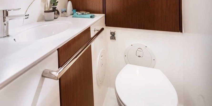 Sailing yacht Io offers 3 toilets with a shower.