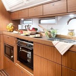 Boat equipment features rolling mainsail, bimini and bow thruster. It also boasts a heating, an audio system, outside speakers and inside speakers. The fully-equipped galley includes an oven, cooker, sink and kitchen utensils.