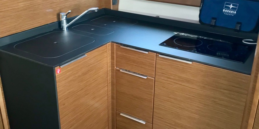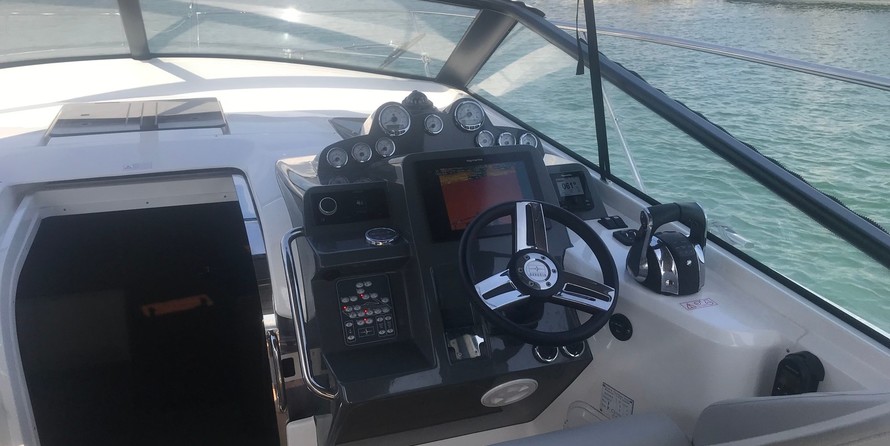Boat equipment features radar, bimini and bow thruster. It also boasts a heating, air conditioning, an audio system, outside speakers and inside speakers. The fully-equipped galley includes a microwave, oven, cooker and kitchen utensils.