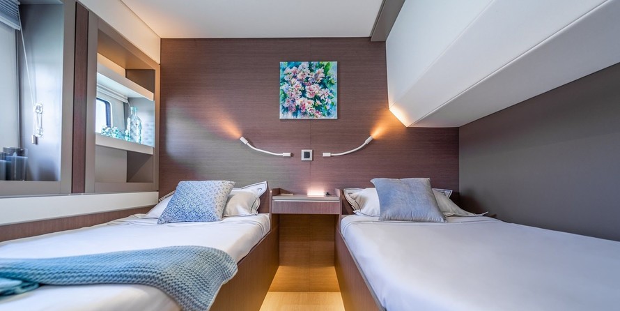 Signature Vision can accommodate up to 10 people in 5 double cabins. Pillows and blankets are included in the price.