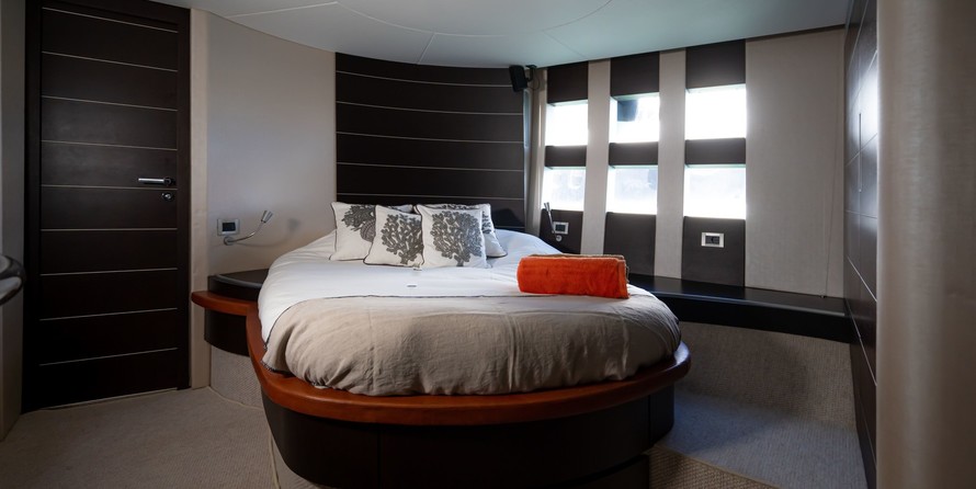 Boat equipment features bimini and outside gps plotter. It also boasts a jet ski, flat screen tv, an audio system, outside speakers and flybridge. The fully-equipped galley includes an oven, cooker, sink and kitchen utensils.