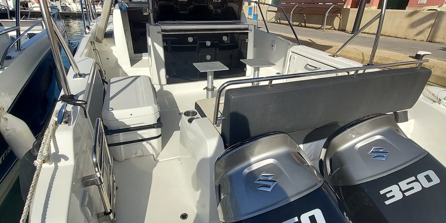 This motorboat is operated by the charter company Menorca Mar & Charter.