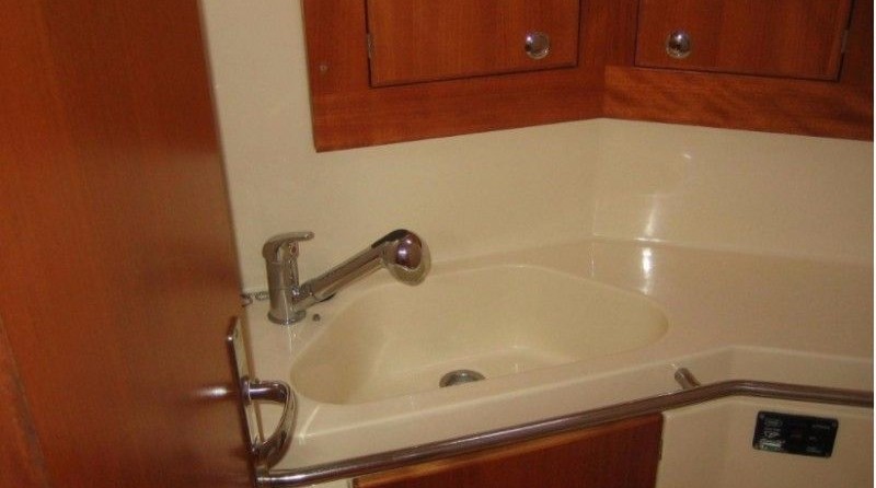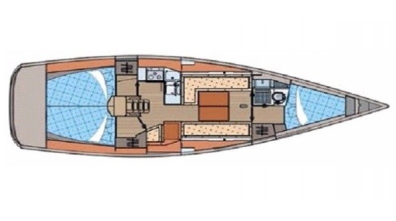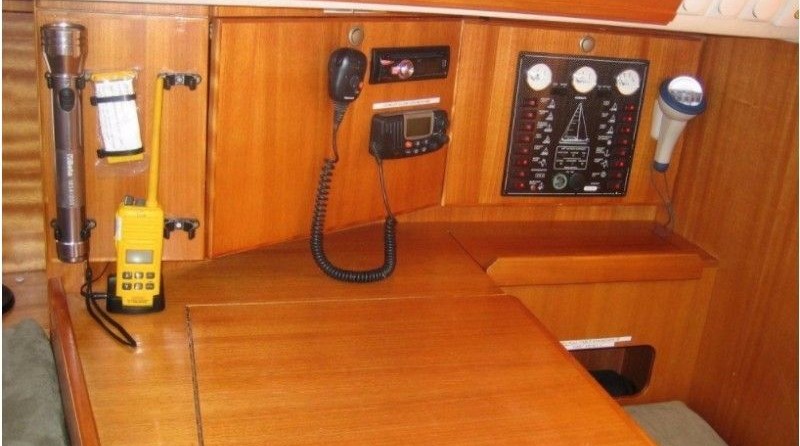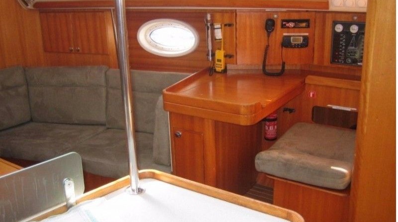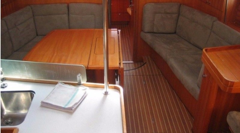 Boat equipment features classical mainsail, bimini and outside gps plotter. It also boasts an an audio system and inside speakers. The fully-equipped galley includes an oven, cooker, sink and kitchen utensils.
