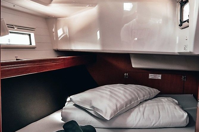 Pitufo can accommodate up to 6 people in 3 double cabins. Pillows and blankets are included in the price.