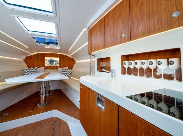 Boat equipment features generator, bimini and outside gps plotter. It also boasts a heating, air conditioning, an audio system, outside speakers and inside speakers. The fully-equipped galley includes a cooker, sink and kitchen utensils.