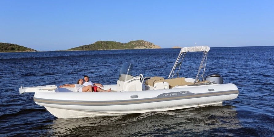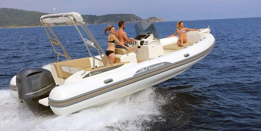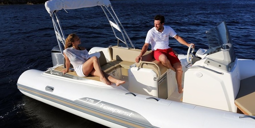 This 2022 Capelli Tempest 775 - Tupac is suitable for 12 people. It is docked in Marina Ibiza, Spain.